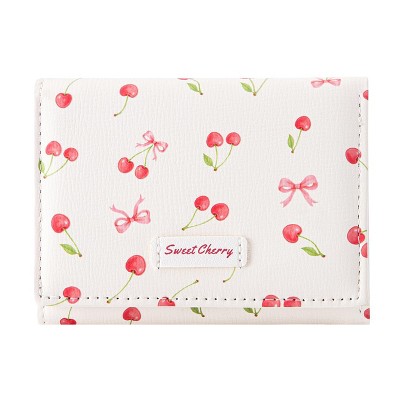 Narwey Girls Cute Cherry Print Coquette Bow Wallet Small Wallet Card Holder ID Window