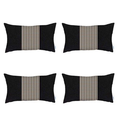 HomeRoots Set of Four 12" X 20" Black Tan And Off White Lumbar Houndstooth Throw Pillow Covers