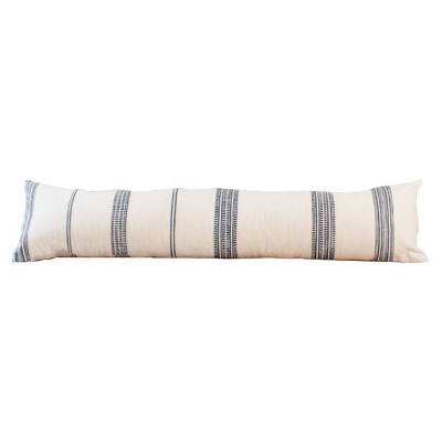 Slickblue Cotton Lumbar Pillow with Insert, Hand-Spun Woven Cover, 12 x 48 Inch, Long Cushion, Natural with Navy