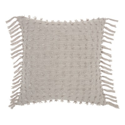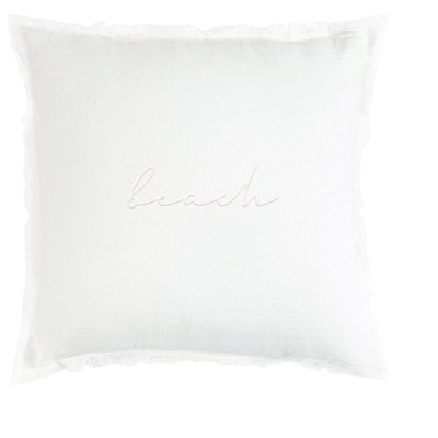 17"x17" Embroidered Poly Linen Square Throw Pillow Cream - Edie@Home