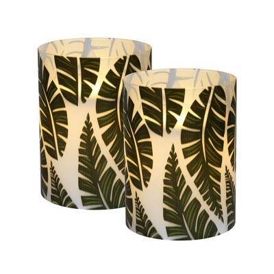 LumaBase Battery-Operated LED Glass Candles with Flickering Flame, Ferns - Set of 2