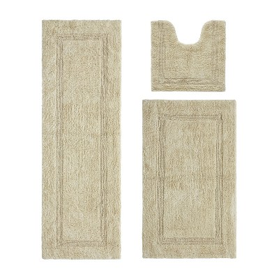 Lux Premium 100% Cotton Ultra-Soft Tufted Solid Reversible 3 Piece Bath Rug Set, Water-Absorbent, Durable, Machine Washable Bathroom Rug