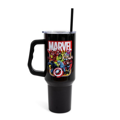 Silver Buffalo Marvel Comics The Avengers 40-Ounce Black Stainless Steel Tumbler With Handle