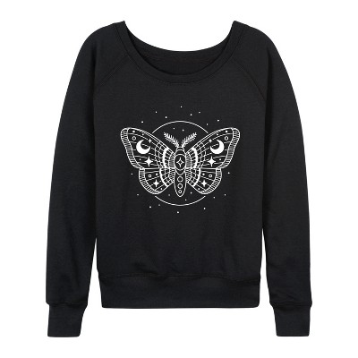 Women's - Instant Message - Celestial Moth Lightweight French Terry Wide Neck Long Sleeve Graphic Shirt