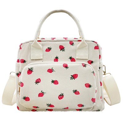 Narwey Corduroy Lunch Bag Lunch Box for Women Men, Cute Strawberry Lunch Tote Bags