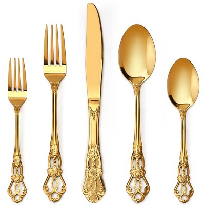 5-Piece Flatware Set for 1, Stainless Steel Retro Silverware with Vintage Baroque Design, Mirror Finish & Dishwasher Safe