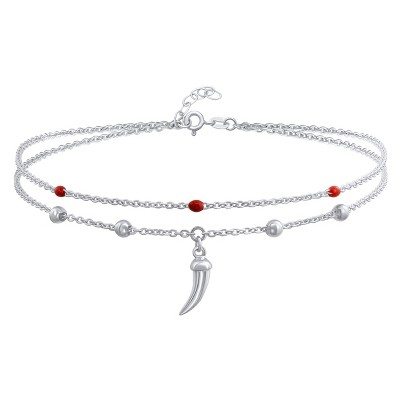Bling Jewelry Amulet Cornicello Horn Chili Pepper Anklet Ankle Bracelet Red Bead Sterling Silver