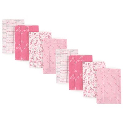 Luvable Friends Baby Girl Cotton Flannel Burp Cloths 4pk, Love, One Size