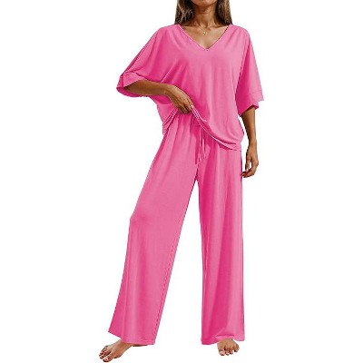 Ekouaer Women's 2 Piece Lounge Set V-Neck Pajama Sets Oversized Summer Outfits with Pockets