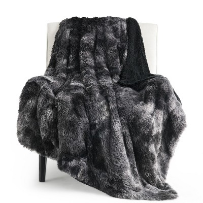 HomeRoots 50" X 70" Dark Gray and Ivory Faux Fur Plush Throw Blanket