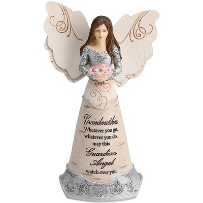 Pavilion Gift Company - Love You Mom - 7.5" Angel Holding Flowers - Decorative Objects