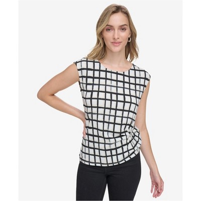 Calvin Klein Womens Plaid Sleeveless Shell Top Pullover Blouse