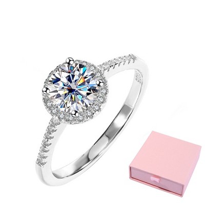 Women's Silver Diamond Ring, Modern Single-Circle Engagement Ring for Her