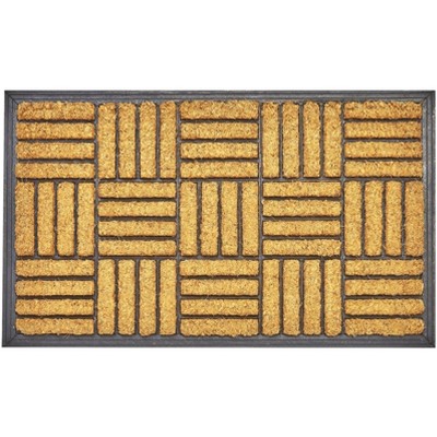 HomeRoots 24" X 36" Natural and Black Coir Geometric Outdoor Door Mat