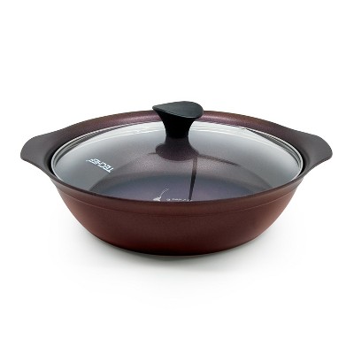 KOCH SYSTEME CS 12 Inch Nonstick Frying Pan with Lid, Granite Frying Pan with Non-toxic Nonstick Coating, Gray/Red
