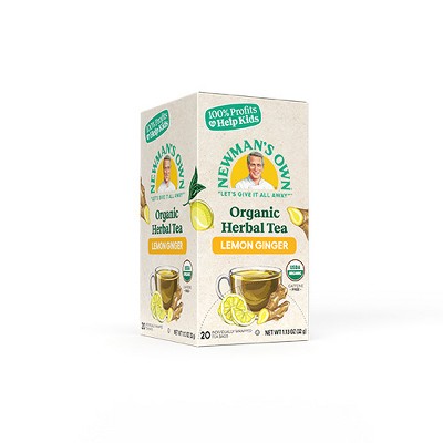 Newman's Own Organic Lemon Ginger Herbal Tea Rooibos Tea with Organic Ginger 20 Individually Wrapped Tea Bags USDA Certified and Kosher Caffeine-Free