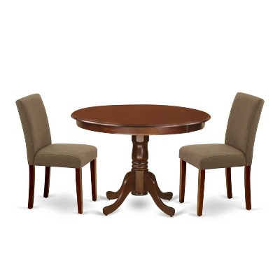 Round Kitchen Table Set 3pc - 42 Inch Table & 2 Parsons Chairs - Linen Fabric & Mahogany Legs - Dining Room Set