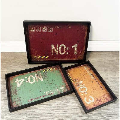 Storied Home Set of 3 Found Wood Boxes Brown: Rustic Decorative Trays, Not for Food Service