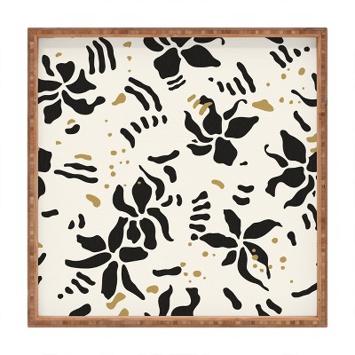 Modern Tropical Mod Flower Garden Black White Square Bamboo Tray - Deny Designs