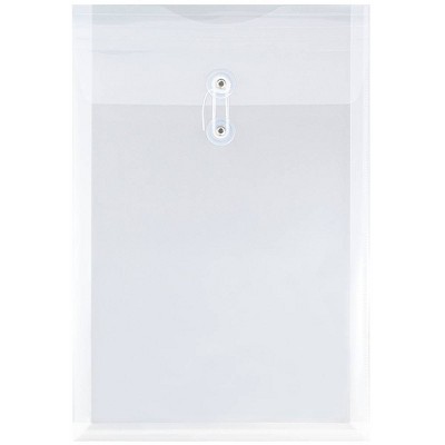 JAM Paper Plastic Envelopes with Button and String Tie Closure, Letter Booklet, 9 3/4'' x 13'', Clear Poly, 12pk