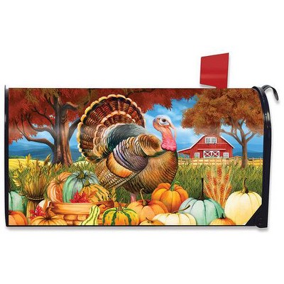 Briarwood Lane Fall Thanksgiving Mailbox Cover - Standard Size - Turkey and Pumpkins For Thanksgiving Mailbox Cover