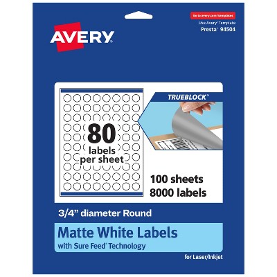 Avery TrueBlock Matte White Paper Labels, 3/4" diameter Round