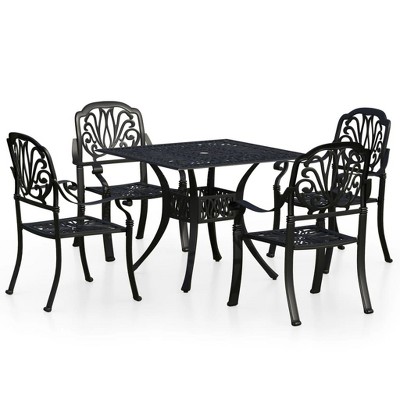 vidaXL Bistro Set Patio Table and Chair Bistro Table Outdoor Cast Aluminum - Black 4 Items