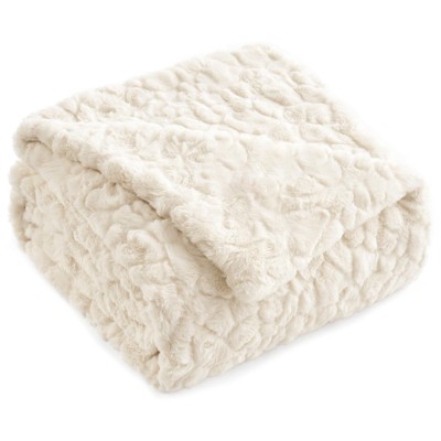 Itopfox Reversible Faux Fur Throw Blanket, Ultra-Soft Plush Warm Fluffy Wave Textured Blanket for Couch, Sofa, Bedroom, Living Room, Cream White