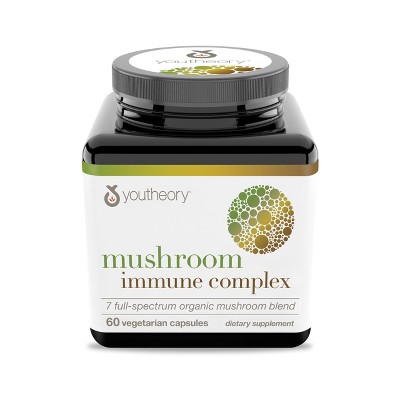 Youtheory Mushroom Immune Complex - Organic Mushroom Blend with Chaga, Cordyceps, Lion's Mane, Maitake & More - 60 Vegetarian Capsules