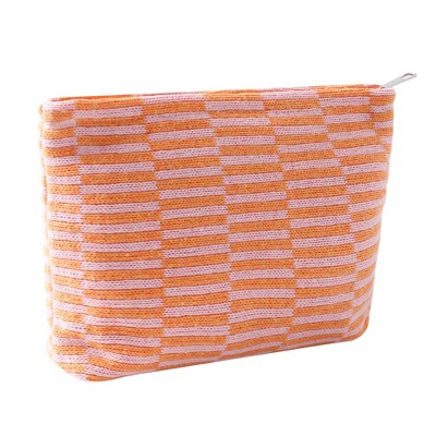 Narwey Checker Corduroy Makeup Bag Women Cosmetic Toiletry Travel Pouch Office Desk Organizer, Vintage Black White Block