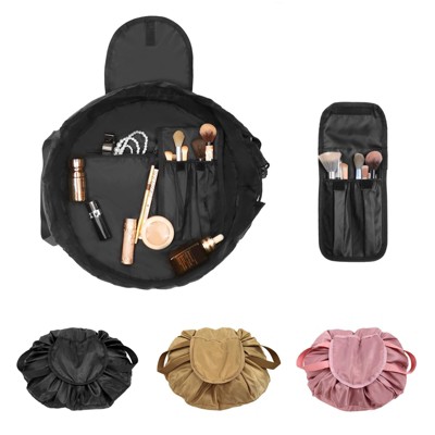 Narwey Drawstring Makeup Bag Open Flat – Barrel Drawstring Cosmetic Bag