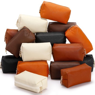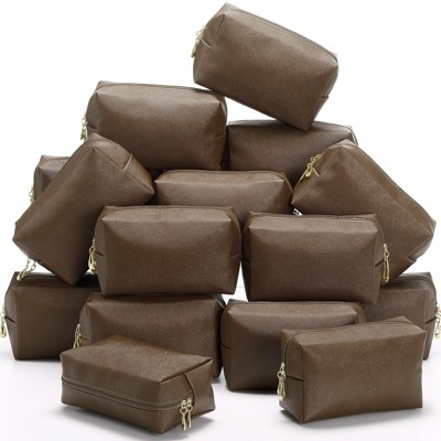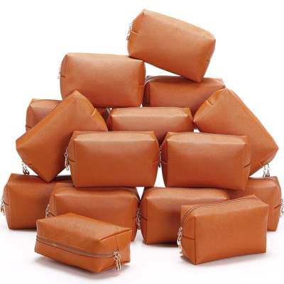 Narwey 15 Pcs Aesthetic Makeup Bags PU Leather Cosmetic Pouches Waterproof Plain Toiletry Bags Makeup Pouches Bulk