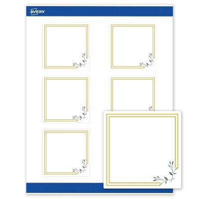 Avery 3" x 3" Labels, Gold Double Border with Florals, 60 ct, Matte, Double Gold Border with Florals