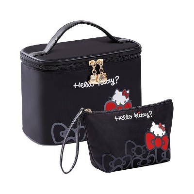 Narwey Travel Makeup Bag Large Cosmetic Bags with Brush Holder,Black Waterproof 2PCS Portable Cosmetic Case