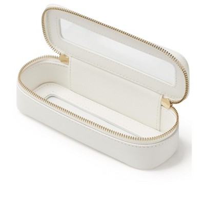 Narwey Slim Makeup Brush Bag Travel Clear Toiletry Bag for Women Cute White Make Up Bag