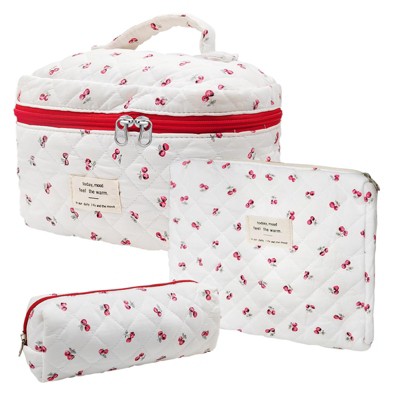 Narwey Cute Cotton Quilted Makeup Bag Set, Large Travel Cosmetic Bag for Women, Big Make Up Bag with Toiletry Organizer
