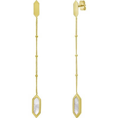 14k Yellow Gold 57mm Mother of Pearl, Onyx or Malachite Hexagon Drop Gemstone Earrings