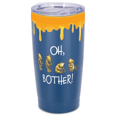Elanze Designs 20 oz Stainless Steel On the Go Insulated Travel Tumbler With Push Top Lid, Classic Yellow Bear Blue