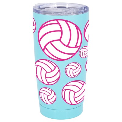 100 North 20 Ounce Stainless Steel On the Go Travel Tumbler With Push Top Lid, Volleyball Teal