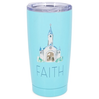 Elanze Designs Faith In Him Watercolor Church House of God Wrap-Around Design 20 Ounce Stainless Steel On-The-Go Coffee Mug, Thermal Travel Tumbler