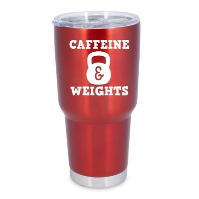 100 North 30 Ounce Stainless Steel On the Go Travel Tumbler With Push Top Lid, Caffeine and Weights Red