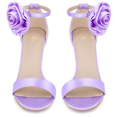 BLISSFUL STEP Flower Satin Ankle Strap Stiletto High Heel Sandals for Women