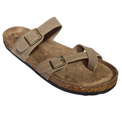 Outwoods Womens Bork-30 Vegan Leather Slip On Toe Loop Sandals, Taupe