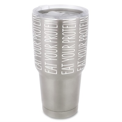 100 North 30 Ounce Stainless Steel On the Go Travel Tumbler With Push Top Lid, Eat Your Protein Silver