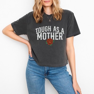 Tough As A Mother Rose - Women's Boxy Crop Top Graphic T-Shirt