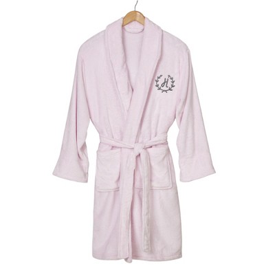 Personalization Mall Floral Wreath Embroidered Luxury Fleece Robes Pink