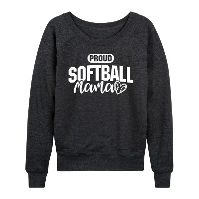 Women's - Instant Message - Proud Softball Mama Lightweight French Terry Wide Neck Long Sleeve Graphic Shirt
