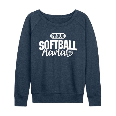 Women's - Instant Message - Proud Softball Mama Lightweight French Terry Wide Neck Long Sleeve Graphic Shirt