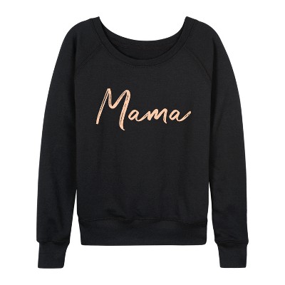 Women's - Instant Message - Mama Script Lightweight French Terry Wide Neck Long Sleeve Graphic Shirt