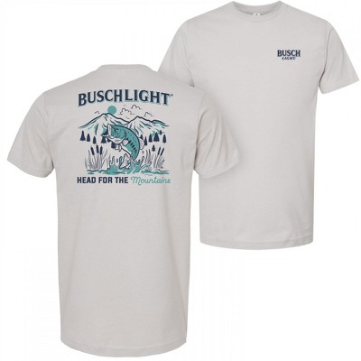 Mens Busch Light Head for The Mountains Fishing Front/Back Print T-Shirt